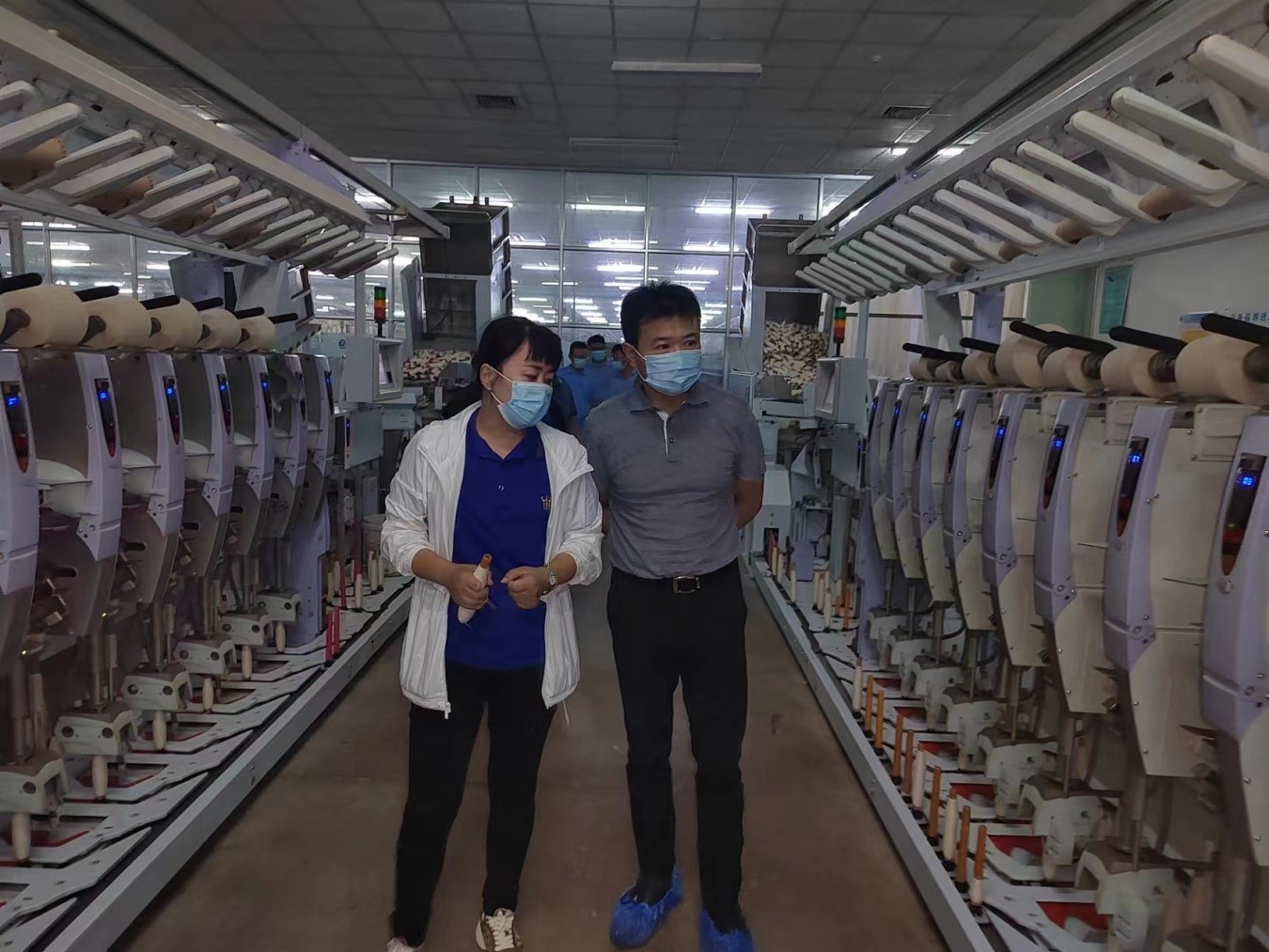 盧剛首先到元首紡織生產(chǎn)車間實地查看了環(huán)錠紡、賽絡(luò)紡、轉(zhuǎn)杯紡等各條生產(chǎn)線生產(chǎn)運行情況,詳細(xì)了解了公司經(jīng)營情況和轉(zhuǎn)型升級舉措,并對公司的未來發(fā)展方向提出積極地建設(shè)性意見。