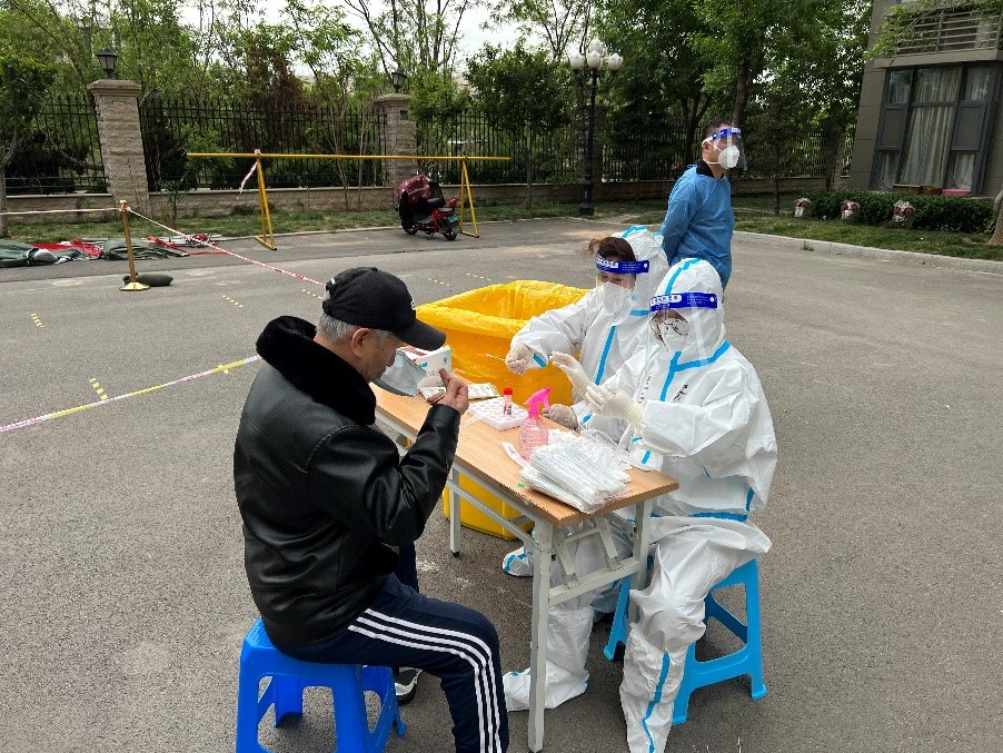 剛結(jié)束固定社區(qū)服務(wù)的于海龍、張波,又主動(dòng)要求參與此次抗疫行動(dòng)。同是退伍軍人又是黨員的他們,在核酸檢測(cè)點(diǎn)搬運(yùn)桌椅、清點(diǎn)防控物資、登記核酸檢測(cè)信息、發(fā)放核酸檢測(cè)貼紙,化身檢測(cè)點(diǎn) “秩序員”“宣傳員”,彰顯退伍不褪色的軍人本色。