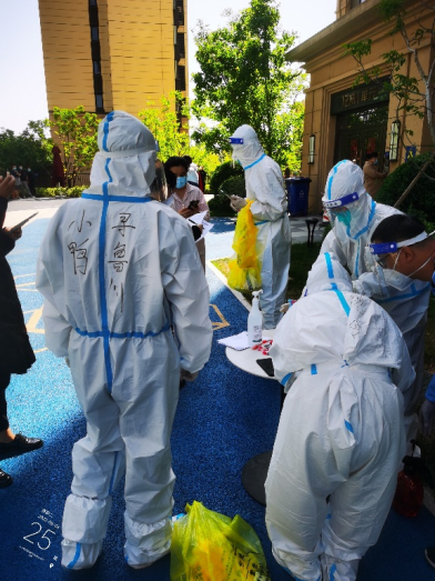 由于一直在高溫下“全副武裝”,志愿者的防護(hù)服早已被汗水浸濕,手掌被泡得發(fā)白,臉上也被口罩勒出了痕跡,更有志愿者出現(xiàn)了頭暈、流鼻血等中暑癥狀。盡管如此,他們也是稍加休整,便再次沖鋒向前。休息時(shí)間,志愿者們席地而坐,匆匆吃完奔赴崗位,因忙碌而錯(cuò)過飯點(diǎn)更是常事,然而他們卻從未有過怨言;腰肌勞損、椎間盤不好的團(tuán)隊(duì)干部即使腰疼的直不起來,也依舊抵擋不住他助力抗疫的熱情與行動(dòng)?!▲喼驹刚邔敶ㄔ趨f(xié)助核酸檢測(cè)時(shí),有一個(gè)小男孩很不配合,由于當(dāng)天的核酸檢測(cè)并沒有貼紙,男孩媽媽便偷偷準(zhǔn)備了小貼畫,拜托尋魯川給小朋友貼上。尋魯川很感動(dòng),并且樂意幫忙,尋魯川說:“他兩只大眼睛直勾勾的盯著貼紙看,特別萌,心都被萌化了,真是開心了一整天,所有的疲憊都一掃而空?!?nbsp;…… 在抗“疫”前線,小鴨人和社區(qū)居民們互相理解,互相配合,如此令人感動(dòng)又暖心的事跡不勝枚舉。